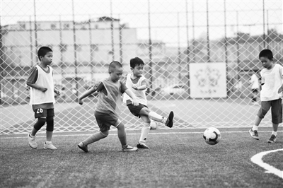 当晚,记者来到十里河体育中心,放眼望去,偌大的绿茵场上球门、边界线、拦球网等设施齐全,标识标线非常规范。有的一家四口围着足球嬉戏玩闹着;有的球队各自为战,踢得热火朝天;有的正在上足球课,教练们正给孩子讲颠球的技巧……