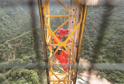 顶着地表温度接近40℃的高温,悬在距离地面85米的桥梁检测车检测平台中……随着夏季高温和雨季的来临,高速养护工人们要精心对每一座桥梁进行巡检,保证过往车辆安全行驶。7月22日,记者走近这些“桥梁大夫”,体验他们的辛劳与付出。上午11点,记者同首发养护公司第四中心书记张庆兴及助手一同乘坐工程车,从G7附近的马池口驻地出发,经过近1个小时的颠簸才来到检查地点——松山大桥。