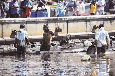 毛里求斯总理贾格纳特8月9日召开新闻发布会宣布,已从日前在毛东南部海域搁浅货船的破裂油库中抽取约530吨燃油,目前燃油泄漏已经停止,但该货船上仍有约2500吨燃油,船体有进一步破裂风险。8月8日,在毛里求斯东南部的马埃堡市,志愿者正在清除海岸边的燃油。 新华社发