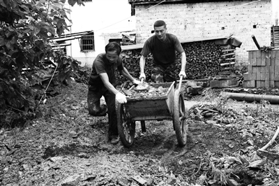 早晨8点多抵达村子,李天宝顾不上休息,带上手套、穿上军靴、接过铲车,站在泥地里弯下腰与战友和志愿者们一起清理废墟中的红砖,顾不上喝水吃饭,一干便是一整天。