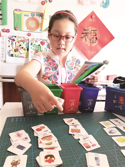 “嗨!大家好,我今天参加了社区关于垃圾分类的小小志愿者活动,我的主要工作是引导小区居民们,按照垃圾分类的类别把自家所产生的垃圾正确地投入到垃圾桶内。”这个暑假,家住海淀区玉海园三里社区、今年10岁的小朋友田进新,每隔几天都会到楼下的垃圾桶前值守,当了一名小小垃圾分类志愿者。