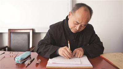 因为常年的使力镂刻,他的右手大拇指已变形,颈椎也相应受损,但剪纸作品带来的成就感却抵消了所有的不适。拿起剪子、刻刀的那一刻起,所有的喧嚣就极速后退,眼前只剩下一张张等待他尽情挥洒才艺的素纸,心一下子就安静下来,这就是剪纸对于马飞的吸引力。兴趣是最好的老师,在剪纸之路上,马飞走得很稳。