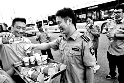 为了确保暑运期间职工的身心健康,公交474路车队工会自入伏以来坚持每天送清凉饮品,让一线职工感受到“娘家人”的关爱。车队工会主席告诉记者,虽然马上就要出伏了,但是只要职工需要,我们依然会坚持给大家送去贴心关爱。本报记者 于佳 摄影报道