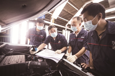 “师傅带着我,一天里最多调试了600辆汽车,胳膊累的都抬不起来。”王少军坦言,虽然累,但累的值,希望有朝一日也成为他师傅那样的劳模技师。望着汗流浃背的徒弟,王少华的眼里充满了希望,微笑的嘴角上扬,他仿佛看到了自己的影子,看到了当初自己那股拼劲儿。
