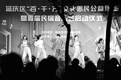 本报讯(记者 周美玉)8月28日晚,延庆区“百·千·万”文化惠民公益活动暨首届民宿音乐会在女子水晶乐坊的经典曲目中拉开帷幕。音乐会启动仪式上,延庆区文旅局宣布,即日起,全区将上映至少一百场戏曲、一千场惠民公益演出、一万场公益电影,让市民和游客尽享文化大餐。