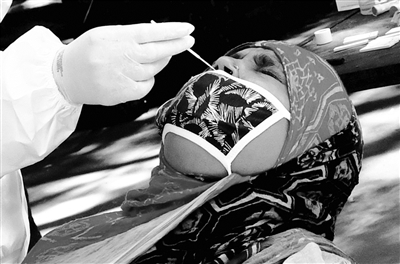 据印度卫生部数据,截至当地时间8月31日上午8时,印度过去24小时内新增新冠确诊病例78512例,累计确诊3621245例。印度中央统计局当天发布的数据显示,受疫情影响,今年二季度印度经济大幅下滑23.9%。图为工作人员进行新冠病毒检测取样。 新华社发