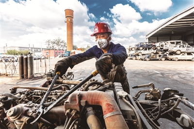 李金涛是一位摄影爱好者,是中国摄影著作权协会会员、北京摄影家协会会员。2018年,李金涛参加“国企开放日活动”,当天天空蓝得透亮,飘着朵朵白云。工人们在汽车前埋头工作。一位工人身上的蓝色工作服满是油污,连白色口罩上都是黑色的污渍,与天空的晴朗洁净形成反差。他看到这一幕,按下了快门。这张名为《报废汽车解体工》的摄影作品获得北京市第十二届职工文化艺术节摄影大赛一等奖。将镜头对准基层劳动者,记录劳动者的喜怒哀乐,这始终是李金涛的主要摄影题材。