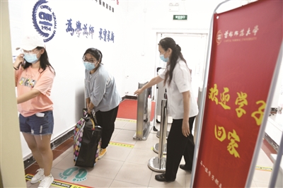 首师大学生处周举坤处长介绍,学校按照“先老生、后新生”的顺序,分年级、分层次安排学生返校,延长返校报到时间段。所有返校学生都要持健康“绿码”和7日内核酸检测阴性证明方能进入;外地返京以及暑假曾经离京的教师同样需要持7天内核酸阴性证明才能返校到岗;师生每天还要坚持报告身体状况,以便校方全面了解师生员工的健康状况和出行轨迹,确保师生的生命安全和身体健康。