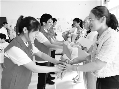 “感谢中建二局装饰公司为老师送来慰问品,让我们感受到了当特教老师的尊严。”手捧鲜花,天云康复中心负责人全贵云激动地说。