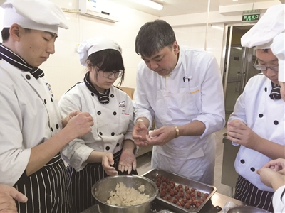 “当然,和面、擀皮、抻面、包饺子等各类面点基本功的练习是很枯燥的,作为老师需要费很多心,引导学生用科学的方式,有耐心、有耐力坚持下去。只有经过艰苦的学习历练过程,学生才能真正成长起来。”