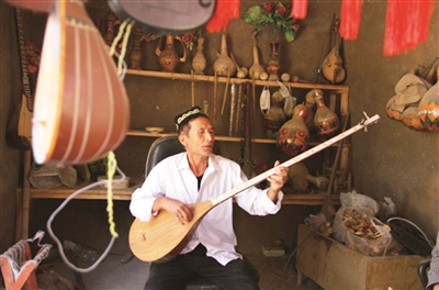 年近七旬的阿巴斯·阿布拉在景区经营特色木工制品13年。他说:“我家祖祖辈辈用本地核桃木、胡杨木制作木碗、木盆、木勺、民族乐器。我在景区用传统手工一边制作一边卖给游客,很受欢迎。儿子也跟着我一起干,传统手艺算是有了接班人。”