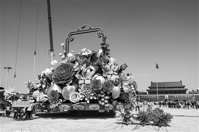 昨天,在北京天安门广场搭建的“祝福祖国”主题花坛初具规模,巨型花果篮将吊装到位。“祝福祖国”主题花坛以喜庆的花果篮为主景,篮内摆放有花卉以及富有吉祥寓意的果实。预计9月25日完工亮相。