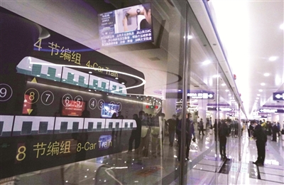 大兴机场线4编组列车上线后,乘客们也不用担心“上错车”的情况。鲁玉桐介绍,在站台门上玻璃及地面有候车位置标志提示,乘客可以根据这些标志找到对应的4、8编组列车的乘车位置。站台候车区设置的乘客信息系统显示屏,可以为站台候车的乘客提供即将到站列车的编组数、即将到站时间、车厢拥挤度等信息。
