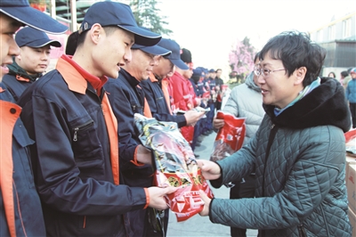 天寒地冻,挡不住“娘家人”的脚步。“太感谢你们了!给我们送来了寓意‘平安’的苹果,有了工会的关怀,我们心里暖暖的,今后我们要继续做好本职工作,为丰台的发展贡献自己的力量。”2018年“两节”期间,丰台区总工会一行带着200箱苹果来到区环境卫生服务中心,对战斗在一线的环卫职工进行了慰问。