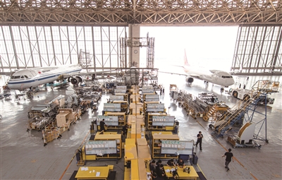 飞机无论在天上飞,还是在地面停放,到了一定时间,必须进行“保养”。怎么维修一架几十吨重的飞机呢?9月21日,本报记者走进北京飞机维修工程有限公司探秘民航飞机维修。
