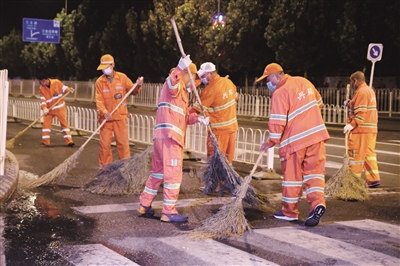 “马路牙子不能有土,烟头都得扫干净。”清扫一队的王国欣边扫边跟队友念叨比赛标准。他告诉记者,其实这个比赛和平时干活儿并无差别,平时也是早上5点全组人员准时开始干活儿,整个路面清扫一遍,一般在七点钟前,收工回去吃早饭,之后就是白天的保洁工作。