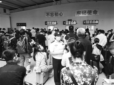 “大爷大妈,我帮您拉着行李箱,您慢点走。”在北京赵公口长途客运站的落客区,面对每天数以万计的旅客,但年过五十的王聪颖仍然一身严整的警服,始终对过往乘客面带微笑。王聪颖是北京市公安局公交总队石榴庄站派出所的巡逻民警,今年是她在赵公口长途客运站驻站的第13个年头,也是她第13个国庆、中秋节的坚守。