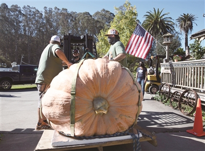 10月12日,一年一度的南瓜称重大赛在美国加利福尼亚州北部圣马特奥县举行。图为南瓜称重大赛现场。