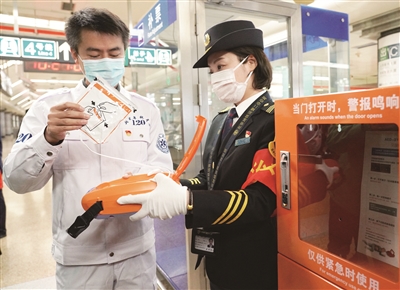 10月27日,北京急救中心工作人员向地铁工作人员演示如何使用自动体外除颤仪(简称AED)设备。当日,北京市启动轨道交通车站配置自动体外除颤仪工作。2022年底,北京市所有轨道交通车站将实现自动体外除颤仪设备全覆盖。