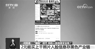 购物时“刷脸”支付,用手机时“刷脸”解锁,进小区时“刷脸”开门……如今,越来越多的事情可以“刷脸”,用人脸识别技术来解决。经调查发现,在某些网络交易平台上,只要花2元钱就能买到上千张人脸照片,而5000多张人脸照片标价还不到10元。(10月27日 央视网)