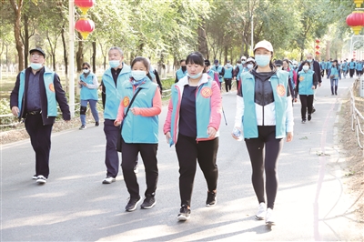 国庆节过后,“美丽大兴 你我同行”2020大兴区徒步文化季暨第四届北京大兴徒步大会、大兴区职工健步行活动正式启动。此次活动由北京市社会体育管理中心、北京市徒步运动协会、大兴区总工会、大兴区体育局、大兴区北臧村镇人民政府等单位共同主办。启动仪式当天,大兴区徒步爱好者代表600余人,共同沿永定河生态林健康步道徒步约10公里。