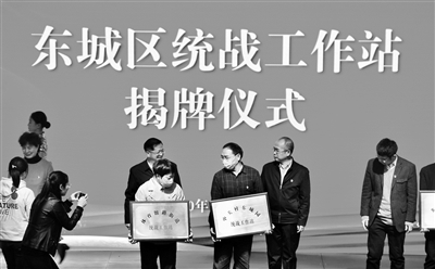 近日,在东城区体育馆路街道“红砖阵地”党群服务中心红星剧场,市区委统战部、组织部领导为东城区18家街道统战工作站颁牌。未来,东城区立足18家街道统战工作站,将统战工作站工作模式打造成可复制可推广的工作模式,确保年底前新阶层人士统战工作在辖区纳税亿元以上楼宇、园区实现有效覆盖。本报记者 边磊 于佳 摄影报道