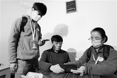 11月1日早上八点,石景山区古城街道南路东社区的人口普查员赵育人敲开了社区居民家的屋门。 “您好,我是人口普查员,现在进行全国第七次人口普查工作,希望您能配合我们”……普查过程中,普查员一边询问居民姓名、年龄、身份证号以及家中人口居住情况等,一边填写普查材料。从11月1日起,古城街道22个社区的395名普查员身着统一服装,佩戴普查员证件和防疫口罩进行入户登记。