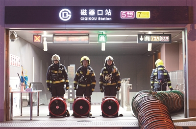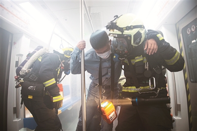 10月31日凌晨,在地铁7号线磁器口站,一辆列车即将出站时,因站内线路故障,高温烟气迅速向站台、车厢内蔓延,造成大量乘客被困。接警后,消防救援人员迅速到场,展开救援。这是北京市消防救援总队举行的地铁火灾灭火救援综合实战演练,共调集消防、公安、医疗、交通等14家单位339余人参与。