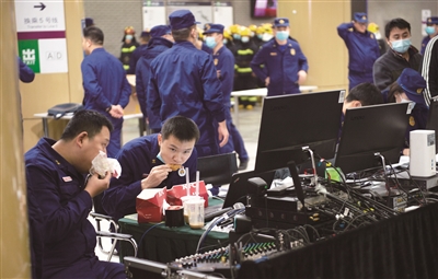 消防救援人员到场后,先后成立侦查组、搜救组、灭火组、照明组、排烟组等多个小组,深入地铁内部查找火点搜救被困人员。其中,搜救组利用“鱼骨搜救法”对站台层被困人员进行搜救。据介绍,这种方法可以形成分散式大面积搜救,同时内攻人员遇到困难时可以通过主绳迅速回到地面。