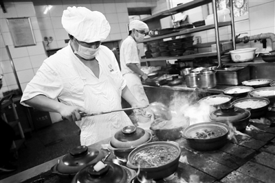 11月7日将迎来立冬节气,京城老字号纷纷为立冬做准备,备下了足量的特色水饺和各种暖胃菜。西四惠丰饺子楼、烤肉季炙子烤肉、砂锅居各式砂锅煲、又一顺涮羊肉,以及老西安饭庄的羊肉泡馍、羊肉串等各家老字号在原有备货量的基础上增加两倍以上,以满足百姓立冬饱口福的需求。本报记者 孙妍 摄影报道