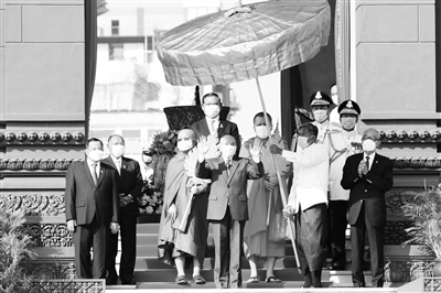 11月9日,在柬埔寨金边,柬埔寨国王西哈莫尼(前中)出席独立日庆祝活动。在柬埔寨已故太皇西哈努克的领导下,柬埔寨人民于1953年11月9日摆脱了法国近一百年的殖民统治,赢得了国家的独立。