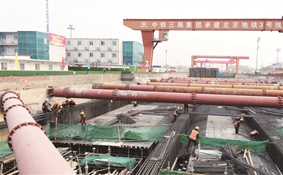 11月11日上午10时,北京地铁3号线一期体育中心站实现结构封顶,这是3号线首座实现封顶的车站。