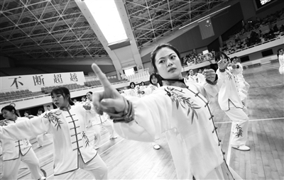 昨天,北京市政路桥集团工会主办的职工八段锦健身操比赛“鸣金收兵”。比赛由初赛到决赛历时五个月,先后有近千名职工参与。本报记者 于佳 摄影报道