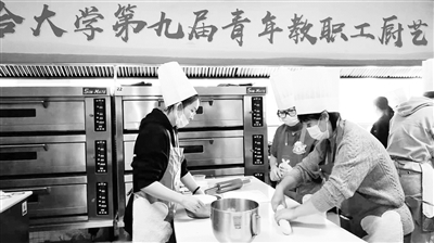 本报讯(记者 任洁) 近日,北京联合大学第九届青年教职工厨艺大赛在旅游学院餐饮实践教学中心鸣锣开赛。围绕“和谐联大温馨家庭携手育人‘鱼’你同行”主题,来自全校14个二级工会的50余名教职工展开厨艺较量,在煎炒烹炸中体验“家”的温暖。