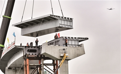 昨天,随着最后一片钢箱梁成功吊装跨越京哈高速,通州环球影城主题公园重点交通配套工程——京哈立交节点工程桥梁主体结构顺利完工。负责施工的市政路桥市政集团京哈项目副经理林海宝介绍,本次跨越京哈高速的钢箱梁吊装施工是整个项目最重要、最难的施工节点,共需吊装钢箱梁22片,总重1000吨。