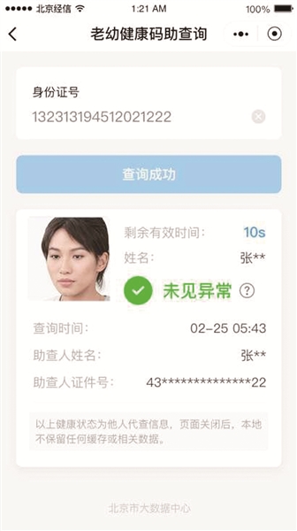 为保障老人、儿童的日常出行,北京“健康宝”上线老幼健康码助查询功能,此项功能面向60岁以上(含60岁)和16岁以下(含16岁)人群,这类群体由于没有手机或不是智能机,出行时遇“验码”会有些许不便,新功能上线后,这一状况将会有所改观。