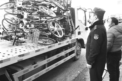 12月2日,海淀区中关村街道综合行政执法队联合相关部门对重点路段的占道共享单车进行了集中清运,规范路边共享单车停放,畅通非机动车和人行道路。中关村街道综合行政执法队副队长李羽征表示,共享单车乱停放关乎着城市的面貌、关乎着每一位市民的出行生活,他们会不遗余力地进行治理,同时也希望广大市民能够从自身做起,有序停放,坚决抵制蓄意乱停乱放行为。