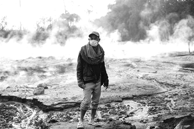 12月2日,在印度尼西亚东爪哇省卢马姜地区,一名面戴口罩的当地居民站在仍有余温的火山灰上。12月1日,位于印尼东爪哇的塞梅鲁火山喷发,随之而来的火山灰将火山附近卢马姜地区的多个村庄覆盖,当地部分居民撤离。 新华社发