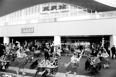 在京张高铁延庆线开通的第一个周末,在“高山流水”造型的高铁延庆站,乘客携亲邀友走下列车。“延庆线开通太方便了,周末带着家人坐高铁过来,住民宿,吃火盆锅。”市民张先生说。