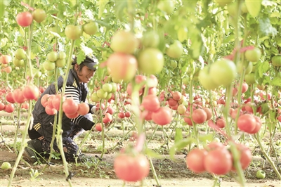 12月7日,河北省唐山市丰南区黄各庄镇双坨村农民在大棚内收获西红柿。当日是大雪节气,各地农民在田间、大棚进行农作物的管护、采收等。 新华社发