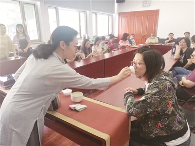 “平时吃的油腻了,我们也喝茶,但真的不讲究,比如:我喜欢绿茶,喝的时候一般就是水烧开了直接冲泡,听了老师的讲解,我明白了,泡茶水温也是有讲究的,冲泡绿茶要用80度至90度的水温,能充分释放茶的香气;此外还了解了很多关于茶的知识,武夷山岩茶中的大红袍、金骏眉等有什么功效,多少度的水温冲泡等,收获很大。”马跃军说。