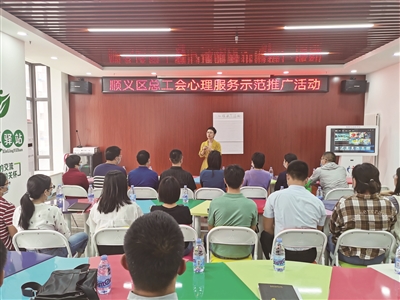 据了解,为进一步提升职工对工会心理健康服务的了解,满足职工心理健康服务的需求,2020年,顺义区总工会广泛开展职工心理服务示范推广活动,着力打造区级职工心理服务示范中心。一年来,相关活动深受职工欢迎,逐步形成了别具特色的工会服务品牌,有效呵护全区职工心灵健康。