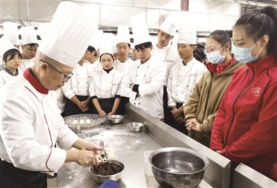 12月15日,顺德厨师学院老师向参赛选手展示制作点心。12月14日至16日,“大国工匠湾区行”活动在广州启动。36名在中华人民共和国第一届职业技能大赛中获得优异成绩的选手参加本次活动。活动分为“大国工匠走进超级工程”“高端制造与高水平技能人才”“技能,点亮湾区生活”三大路线。通过走访粤港澳大湾区内地主要城市的重点企业、重大项目、重要机构生产科研一线,来深入感受粤港澳大湾区高质量发展的成果。 新华社发