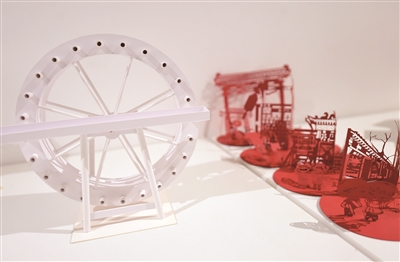 在此次展览中,大运河文化纸产品板块的展品,来自广泛征集来的创意纸产品。这些纸产品从多个侧面呈现出大运河文化中的美食、服饰、生产生活工具与场景、娱乐习俗、人文特色等。如纸艺名家柳军设计制作的纸艺建筑,以另类形式再现了通州漕运码头、洛阳丽景门、西湖断桥与西湖湖心亭等沿河沿线经典建筑。柳军还将清明上河图分成3幅衍纸画来表现,很有创意。