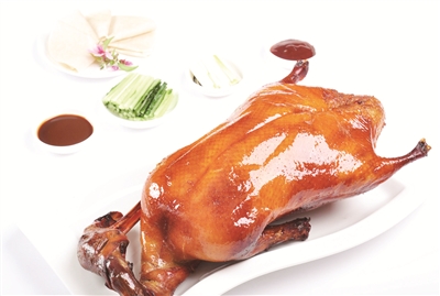 北京烤鸭是一道享誉世界的名菜,用料为肉食鸭、北京鸭。关于北京鸭的由来有两种说法。一种说法是:大运河贯通南北后,水手船工们将江南一种白色的“湖鸭”作为特产贩卖到北京,久而久之经过风土驯化,“湖鸭”就成为了今天的北京烤鸭。另一种说法是,明成祖朱棣定都北京后,每年需要通过大运河将南方的粮食运到北京来,在漕运的过程中,因管理不善,很多粮食会落在河边或水中。沿河官吏或百姓们利用这些散落的粮食来养鸭,经过北京地区人民的长期精心喂养,鸭的体型、肉质起了变化,才逐渐培育出了北京鸭。传说北京烤鸭的烤制技艺起源于明代金陵,也就是今天的南京。明成祖朱棣迁都时,将南京宫廷的烤鸭技艺随运河带至北京。并在嘉靖年间走向了民间。