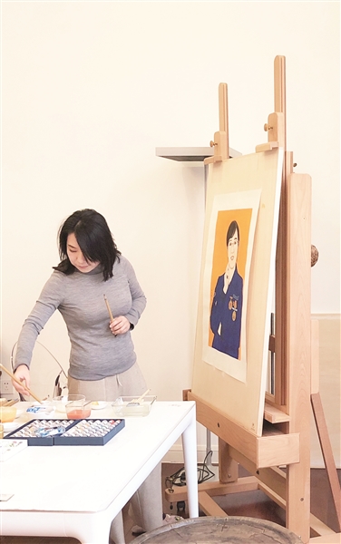 在创作中国画《劳模代康伟》的准备过程中,焦洋首先搜集和学习全国劳动模范代康伟的先进事迹。“学习了代康伟的事迹,我深受感动,激发了我的创作热情。在塑造人物形象时,我采用中国画的绘画形式,以工笔重彩的手法,应物以形、随类赋彩,描绘人物形象,表现劳模的精神风貌。”焦洋说。