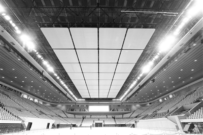 据中建八局首体项目经理程占玉介绍,首都体育馆采用了最新的声光电技术,竭力打造“最美的冰”。通过在场馆顶部采用铝合金框架结构,悬挂36个37平方米的网格膜,从而在场馆的顶部形成一个1332平方米的巨型投影屏幕,同时,在场地四角分别布设激光投影仪,将绚丽的灯光与优美的画面投影至场馆顶部的屏幕,当运动员在冰面上尽情舞动时,仿佛置身梦境一般。“最美的冰”不但可以在冬奥会花样滑冰和短道速滑赛时营造梦幻的竞赛体验,也为赛后吸引群众性冰雪运动体验提供优异的运动氛围和观众视觉引导。