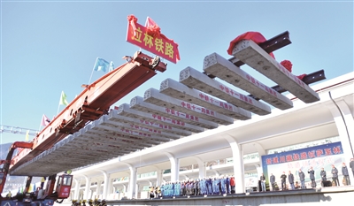 2020年12月31日,川藏铁路拉萨至林芝段铺轨完成。川藏铁路拉林段是西藏自治区首条电气化铁路,全长约435公里,设计时速160公里。图为最后一排轨排落地,标志着川藏铁路拉林段全线铺轨完成。新华社发