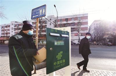 下午2点,零下14摄氏度,西城区永安路,邮递员贾师傅正在户外邮筒收邮件。他说:“天确实冷,但不影响我们收发邮件。有我们在,这活儿就不会耽误。”