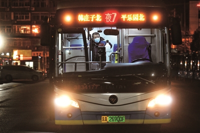 夜7路往返于韩庄子北至平乐园北之间,全程24.8公里,从晚上11点20到早上4点50一共四班,“等等,这暖宝咱搁车上给乘客用吧。”作为党员先锋车组,车上常备着一些应急物品。极寒天气,车组给乘客准备了暖宝,有些人还把车队给大家预备的暖宝也贡献出来,供乘客取用,“因为我们这趟车的乘客大多是代驾司机,23个乘客座位几乎趟趟坐满,代驾司机等活儿的时候,可能没地儿呆、没地儿躲的,想乘客所想吧,有暖宝能好点儿。”老吕说。
